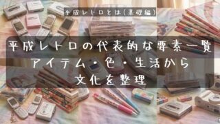 平成レトロを構成する代表的な要素を、アイテム・色・デザイン・メディア・生活の視点から一覧で整理します。
